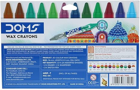 Wax Crayons, Pack of : 1, Color : 24 Shades Rich bright colours Even colour Shading Smudge free